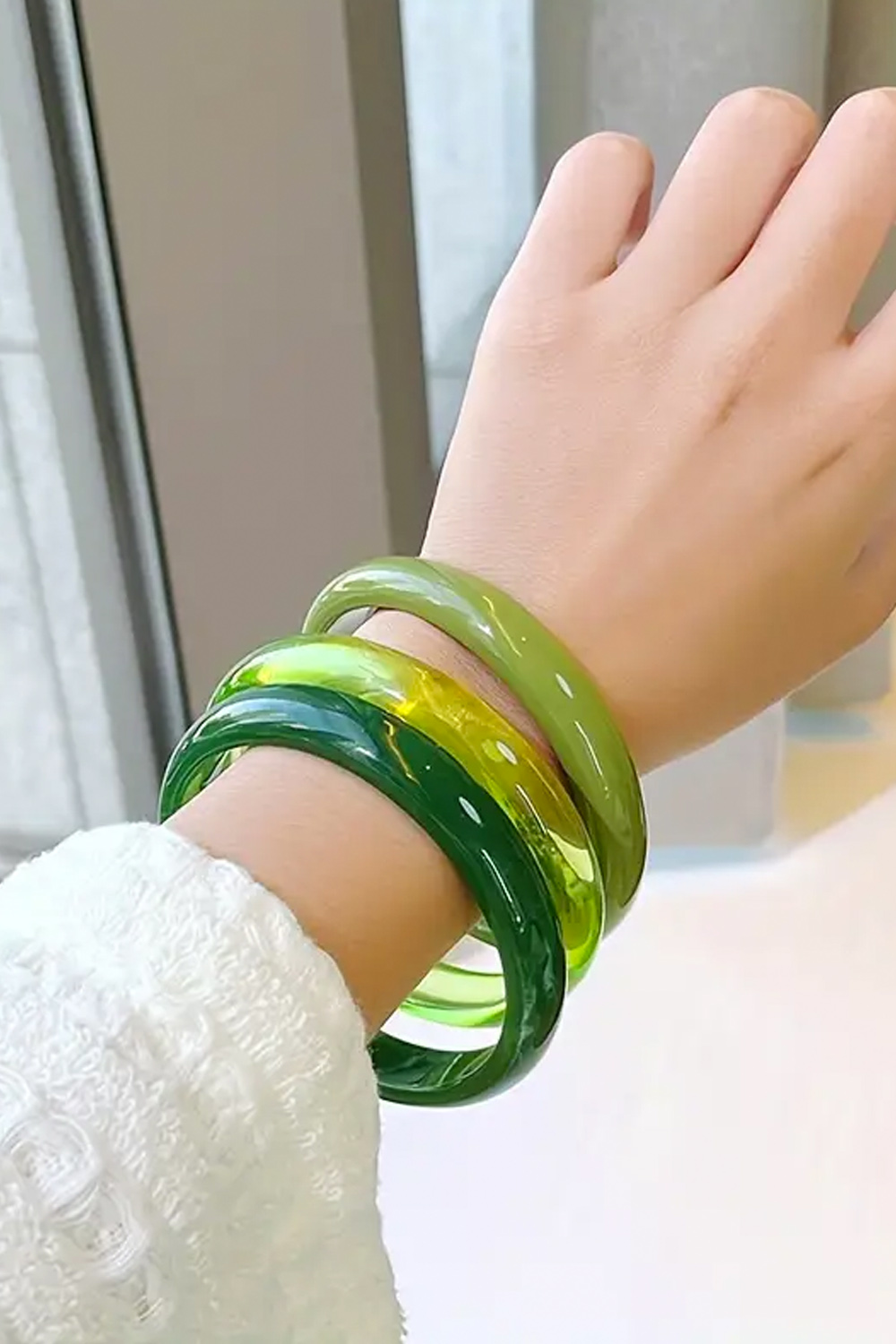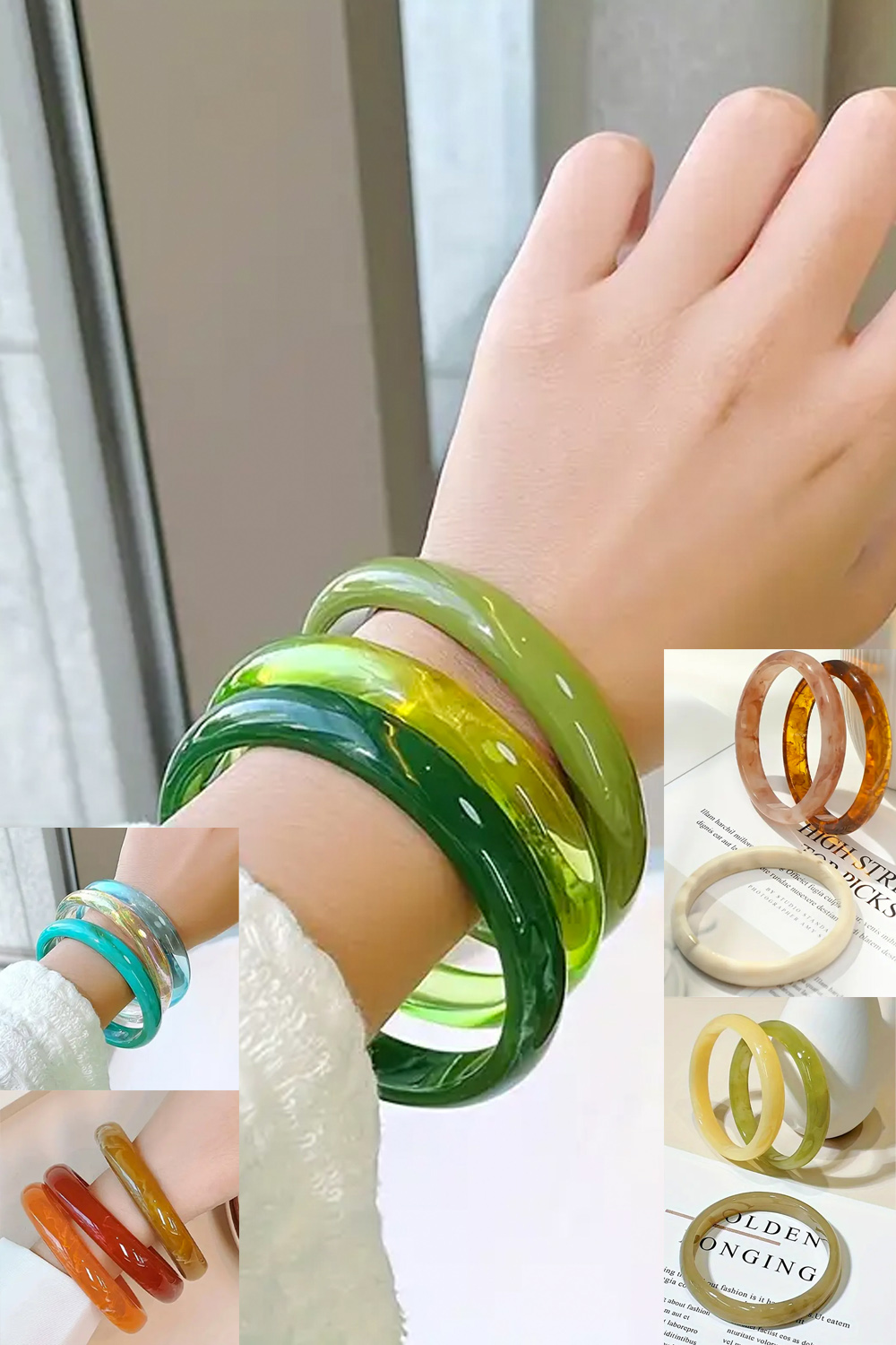 The original bracelet set consists of a thick metal bracelet which is beautifully decorated with small roses and plastic beads, as well as a rubber bead bracelet and 15 narrow bracelets.