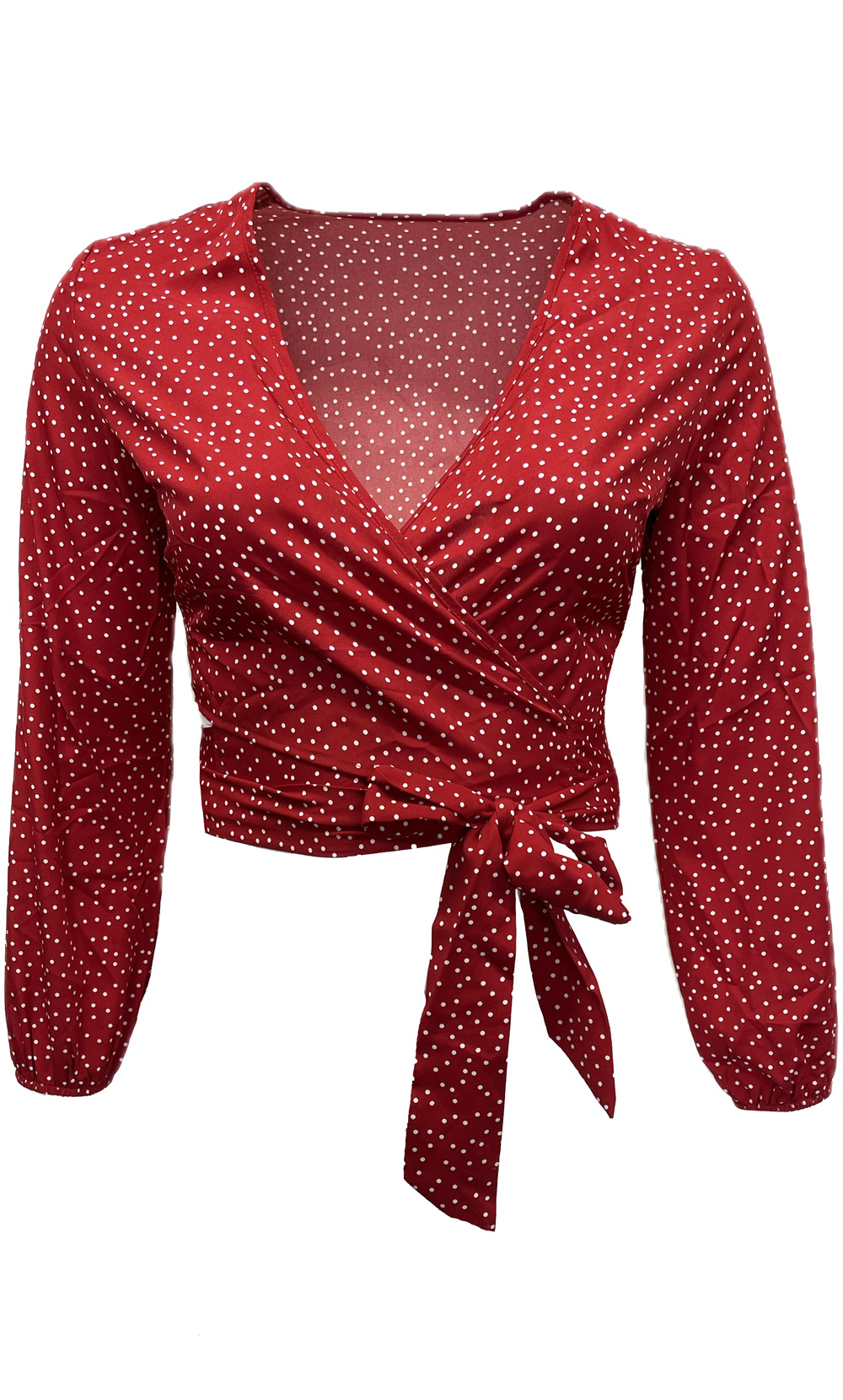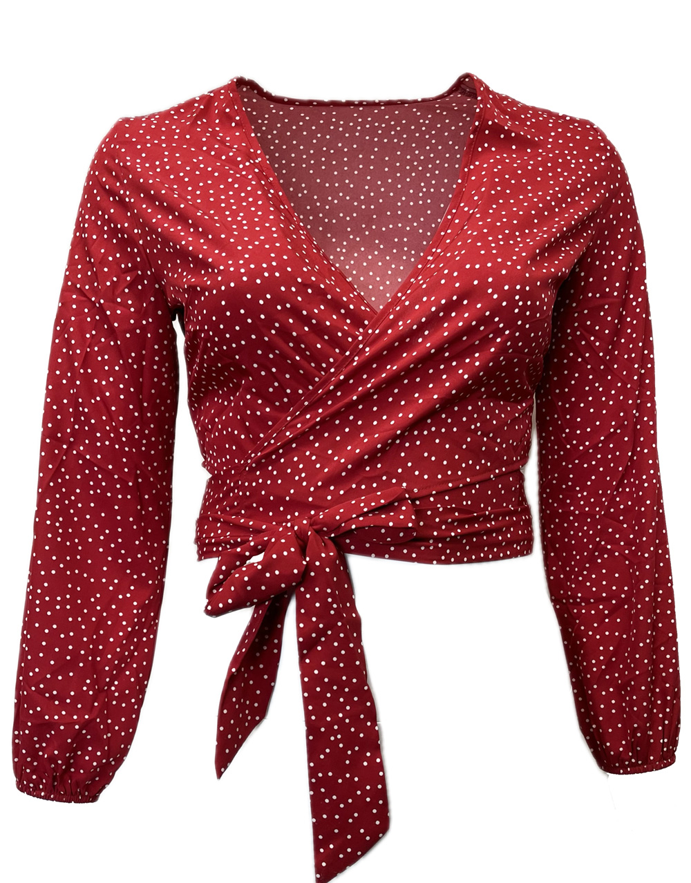 SugarShock Dalma sipping puff sleeves polka dots retro blouse