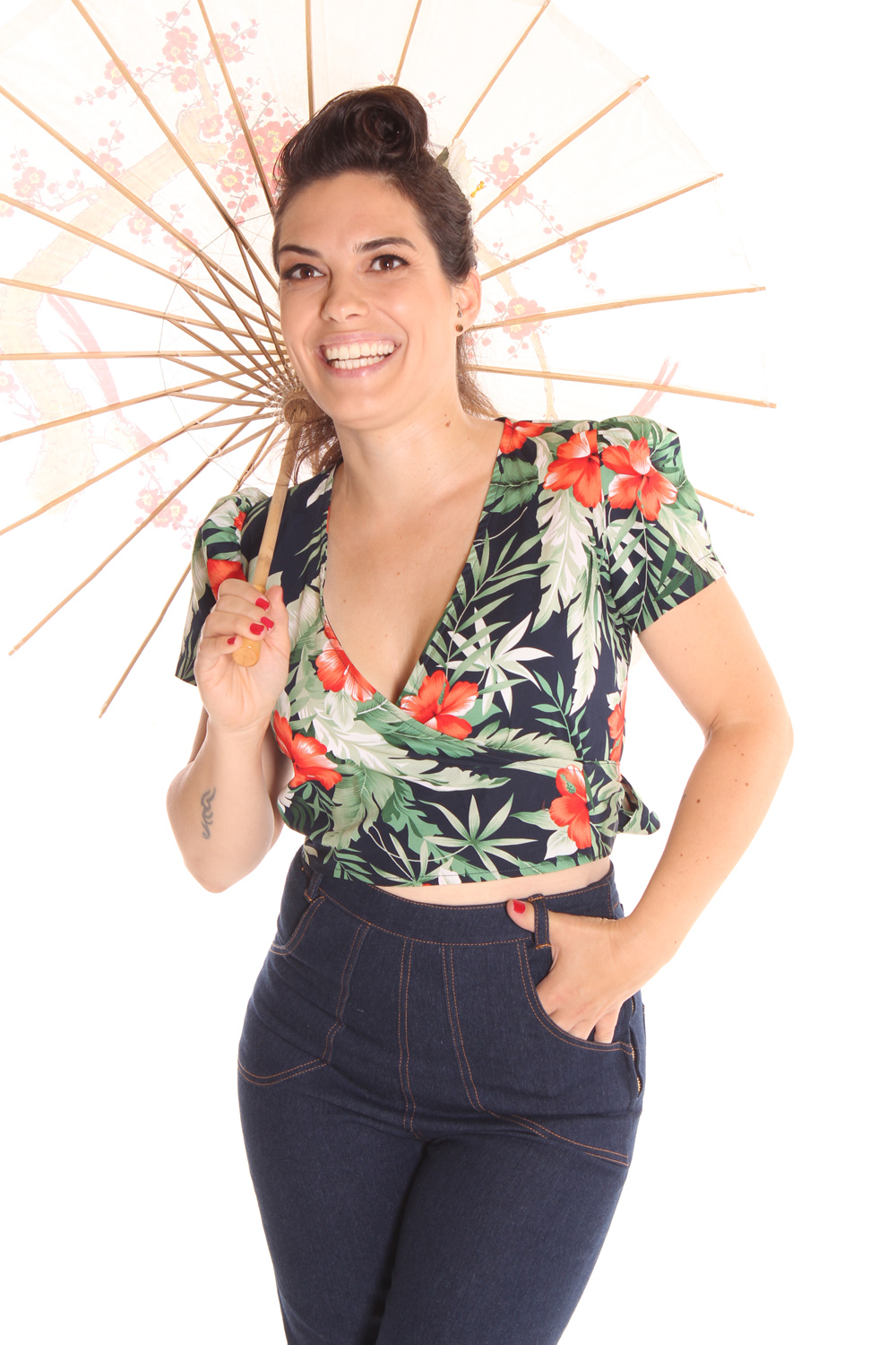 SugarShock Tulu 50s Hawaii Bluse Flower Wickelbluse