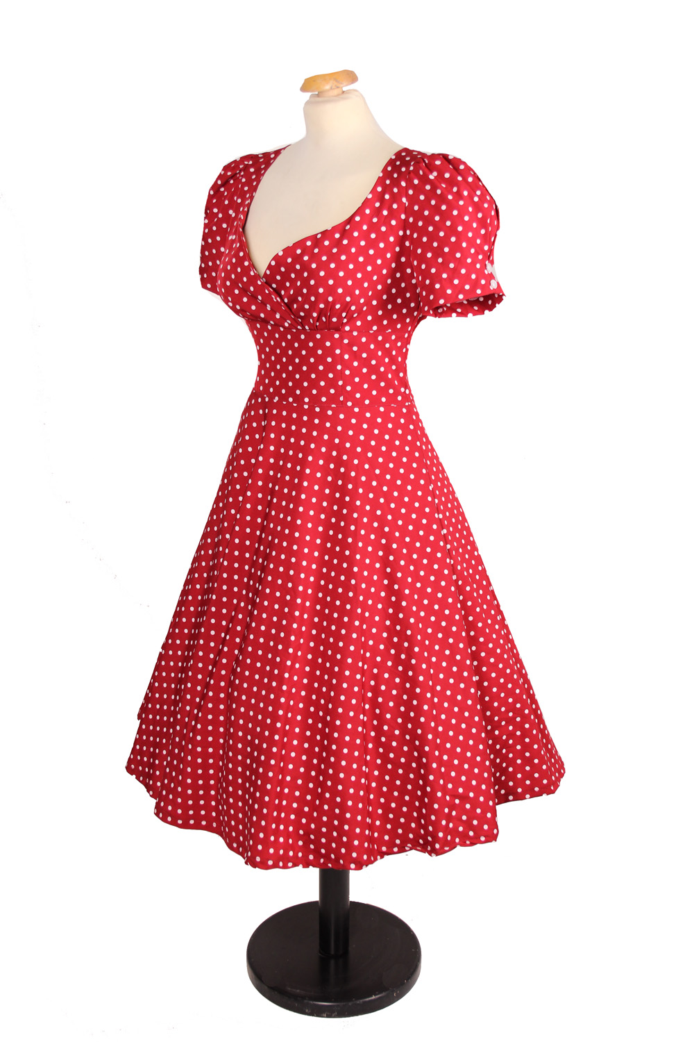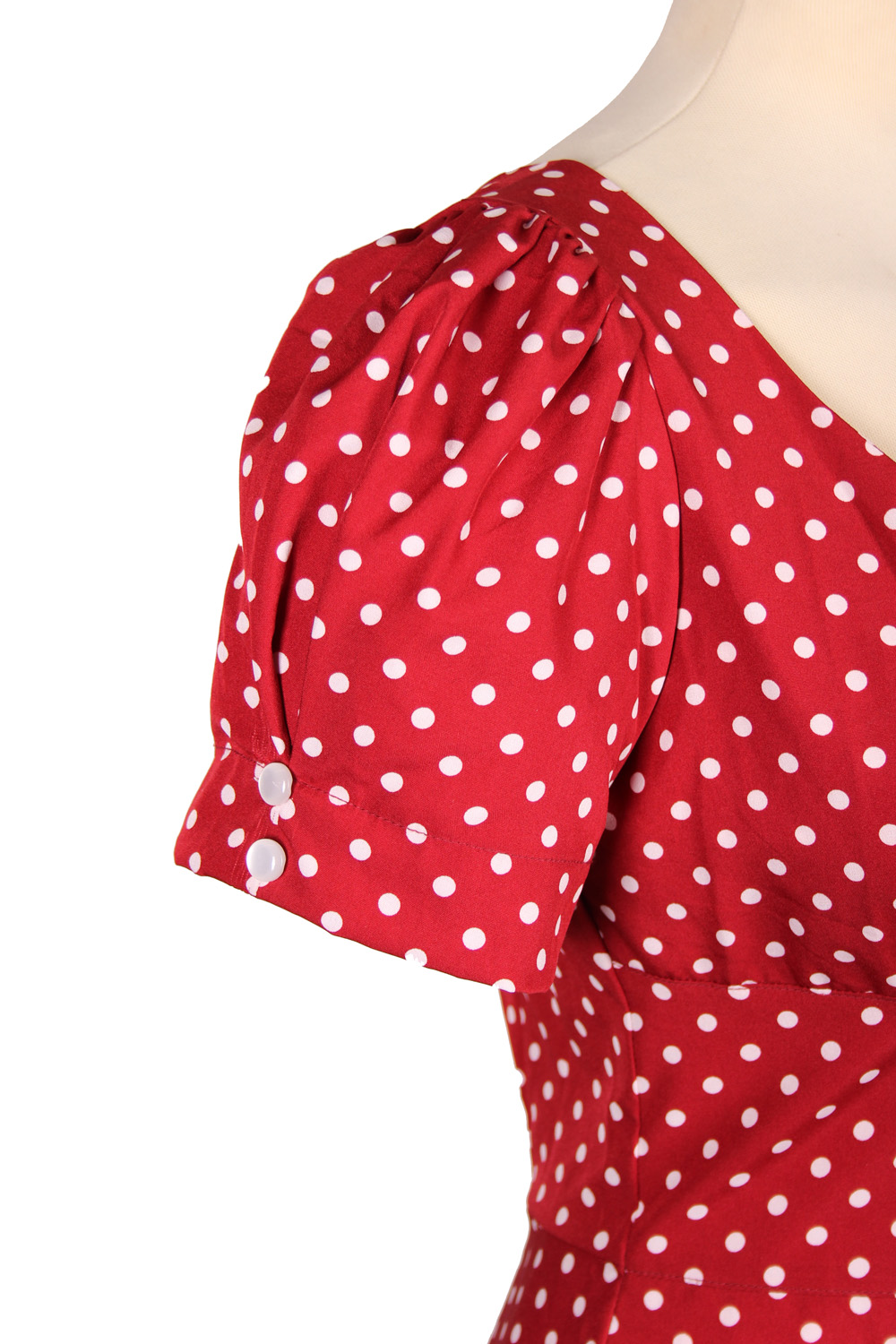 Die auffälligen Puffärmel und das zeitlose Polka Dots Design, stechen bei diesem Kleid besonders ins Auge.