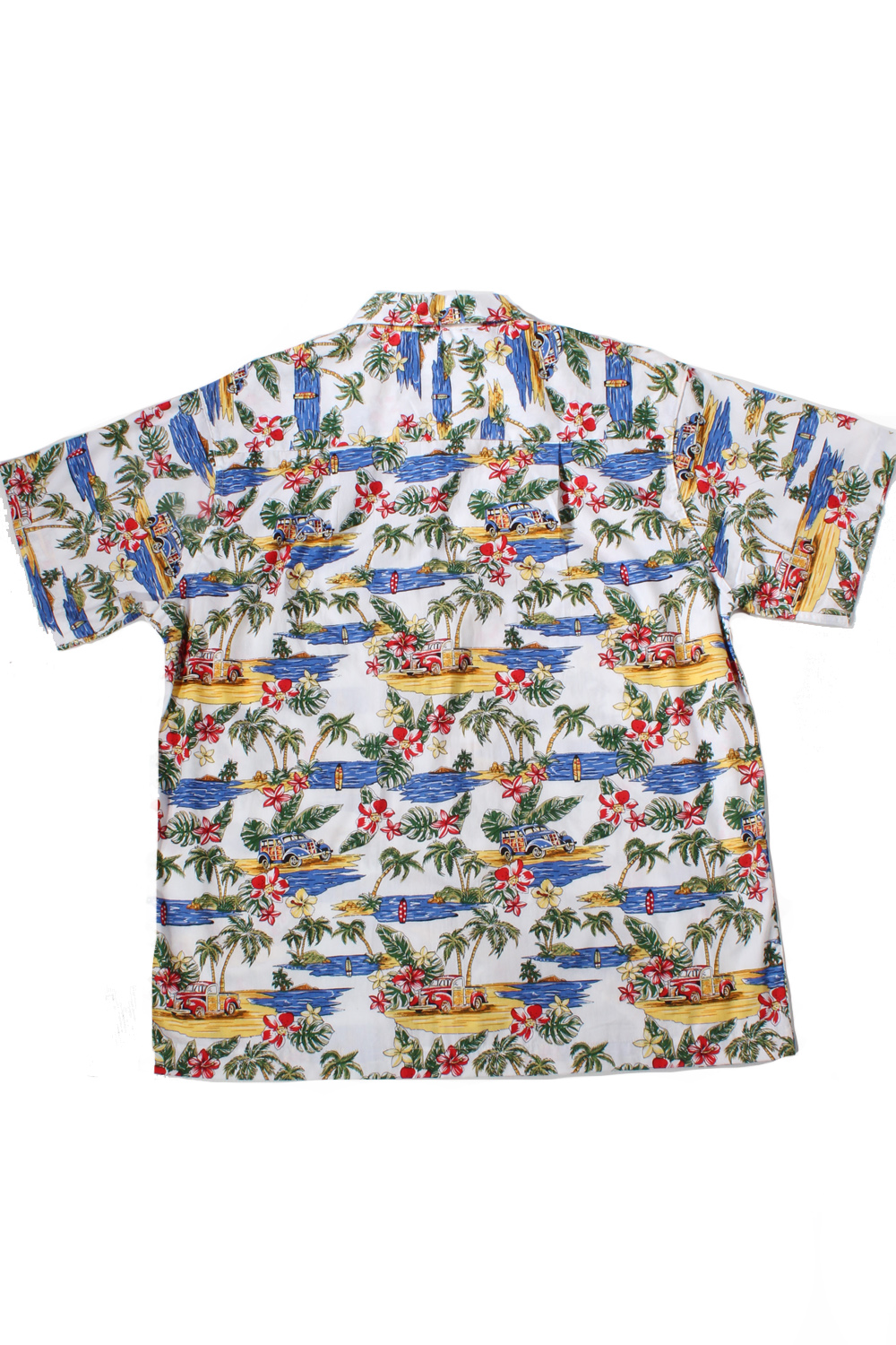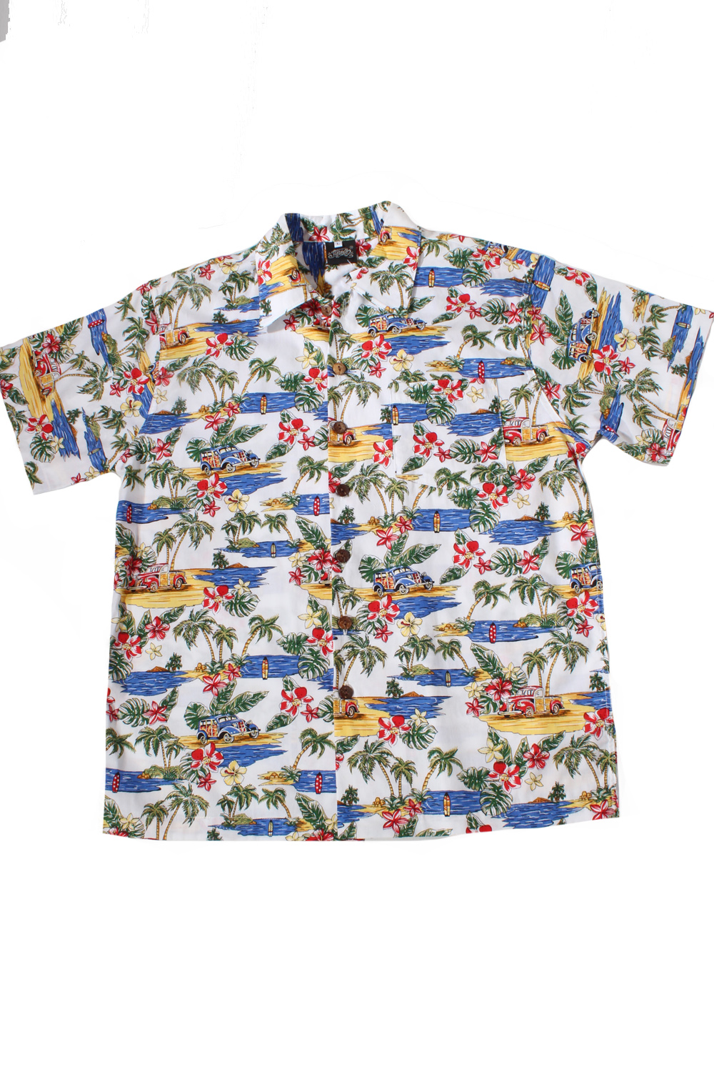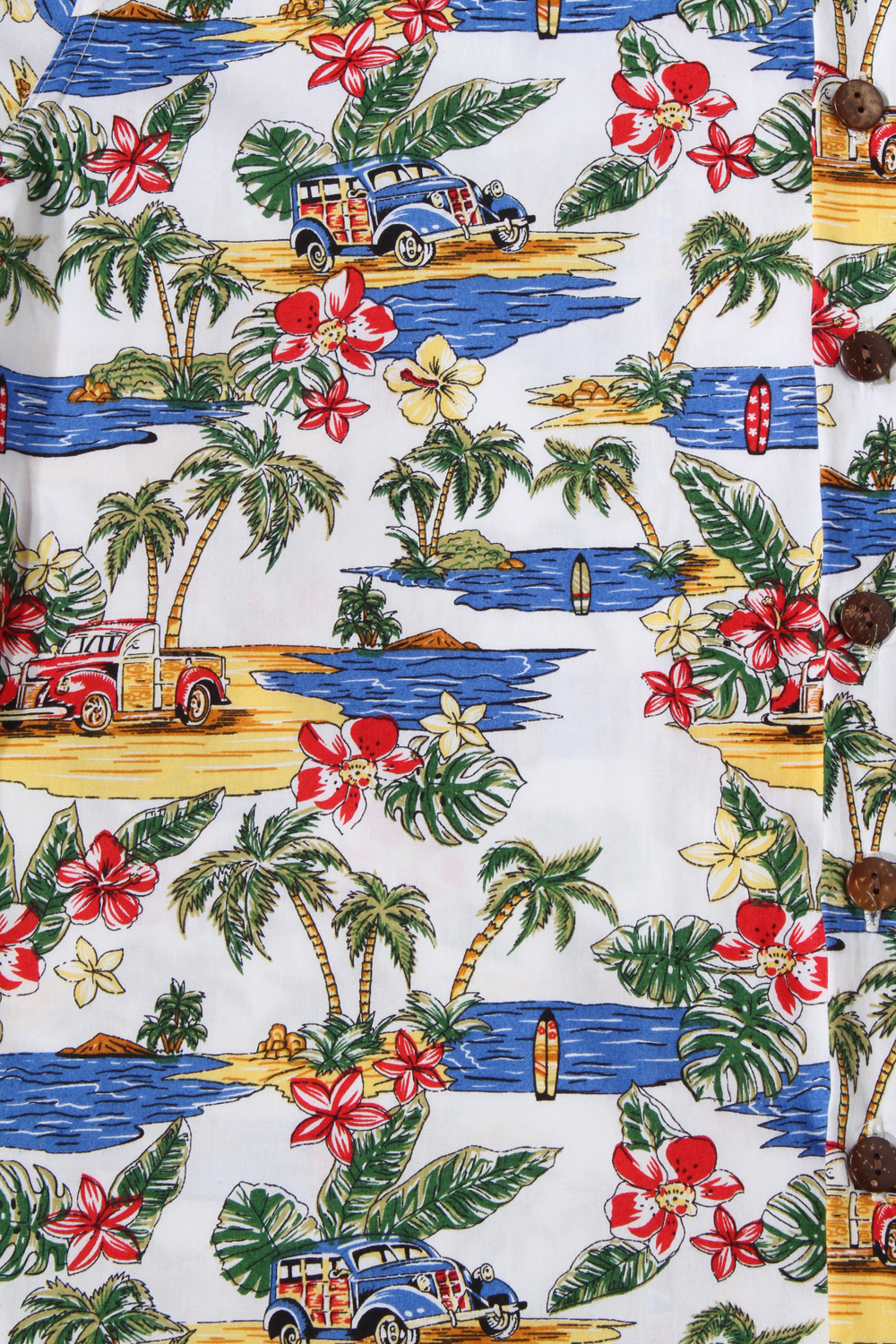 Das lässige vintage Car Muster und die typischen Kokosnussknöpfe machen das Hawaii Hemd zu einem echten retro Klassiker.