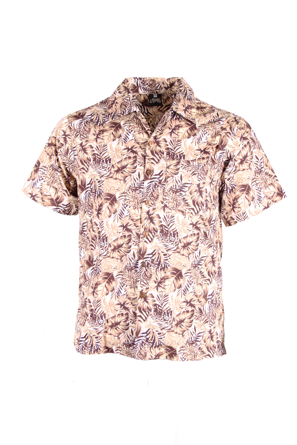 Das lässige Hawaii Blätter Muster und die typischen Kokosnussknöpfe machen das Hawaii Hemd zu einem echten retro Klassiker.
